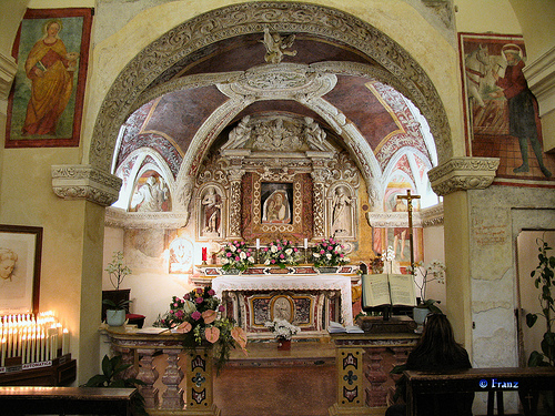 La chiesa di Sant’Anna è intitolata madre della Madonna ed è sorta intorno al 1400, proprio per il servizio religioso della guarnigione del castello e per la popolazione della zona vicina. Oggi di proprietà del Comune è pressoché sempre aperta anche nelle ore notturne, conferendo ancor più suggestione a questo splendido angolo di Sirmione. Sembra che la prima costruzione risalga al 1300, mentre è del 1400 la volta a crociera e del 1600 il locale con la volta a botte . La chiesa ha una sola navata ed un solo altare, il piccolo presbiterio del settecento è decorato a stucchi che rompono l’armonia dell’insieme.. Gli affreschi votivi opera di vari pittori sono del primo 1500. Sull’altare si può vedere una Madonna dipinta su pietra con lo stemma degli Scaligeri.